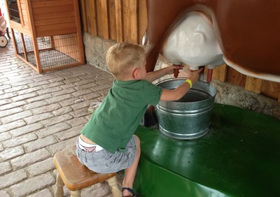 One thing we do every time we go to Utah is see animals. We are animal-deprived in Las Vegas. Luckily they could ride ponies, pet pigs and milk a fake cow.